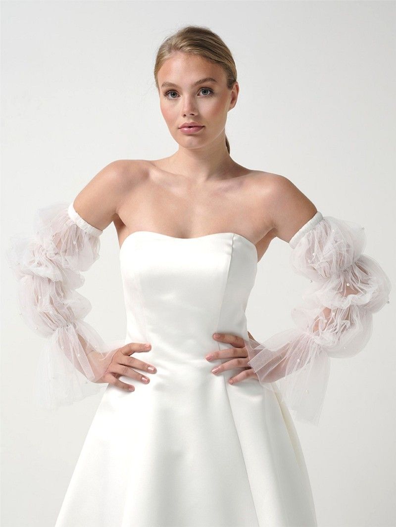 Ontdek onze verfijnde collectie bruidsmode accessiores, waaronder prachtige capes en mouwen die je look compleet maken. Of je nu opzoek bent naar een romantische cape of subtiele mouwtjes voor een extra vleugje charme, onze accessiores bieden de perfecte finishing touch voor elk bruid. Voeg een stijlvolle en persoonlijke flair toe aan je trouwjurk met onze exclusieve ontwerpen.